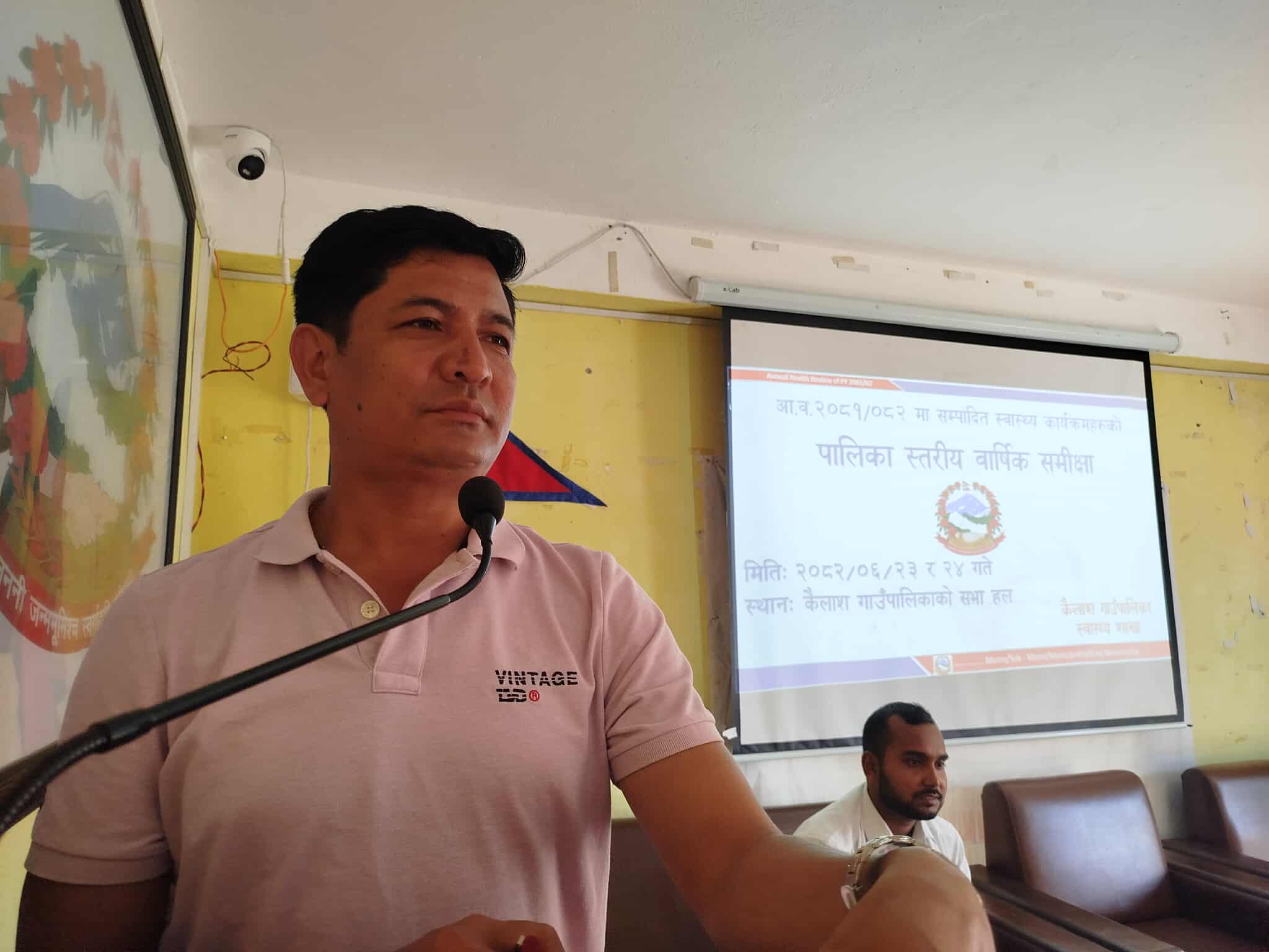२३ असोज, कैलाश \ स्थानीय सरकारले लिएको लक्ष्य पुरा गर्नु हामी सबैको दायित्व रहेको कैलाश गाउँपालिकाका अध्यक्ष लोकबहादुर मुक्तानले बताएका छन् । विहीबार गाउँपालिकामा स्वास्थ्य शाखाको आव २०८१/०८२ मा सम्पादित स्वास्थ्य कार्यक्रमको वार्षिक समीक्षालाई सम्बोधन गर्दै सरकारको लक्ष्य पुरा गर्न कर्मचारी र जनप्रतिनिधिहरुको दायित्व रहेको बताएका हुन् ।