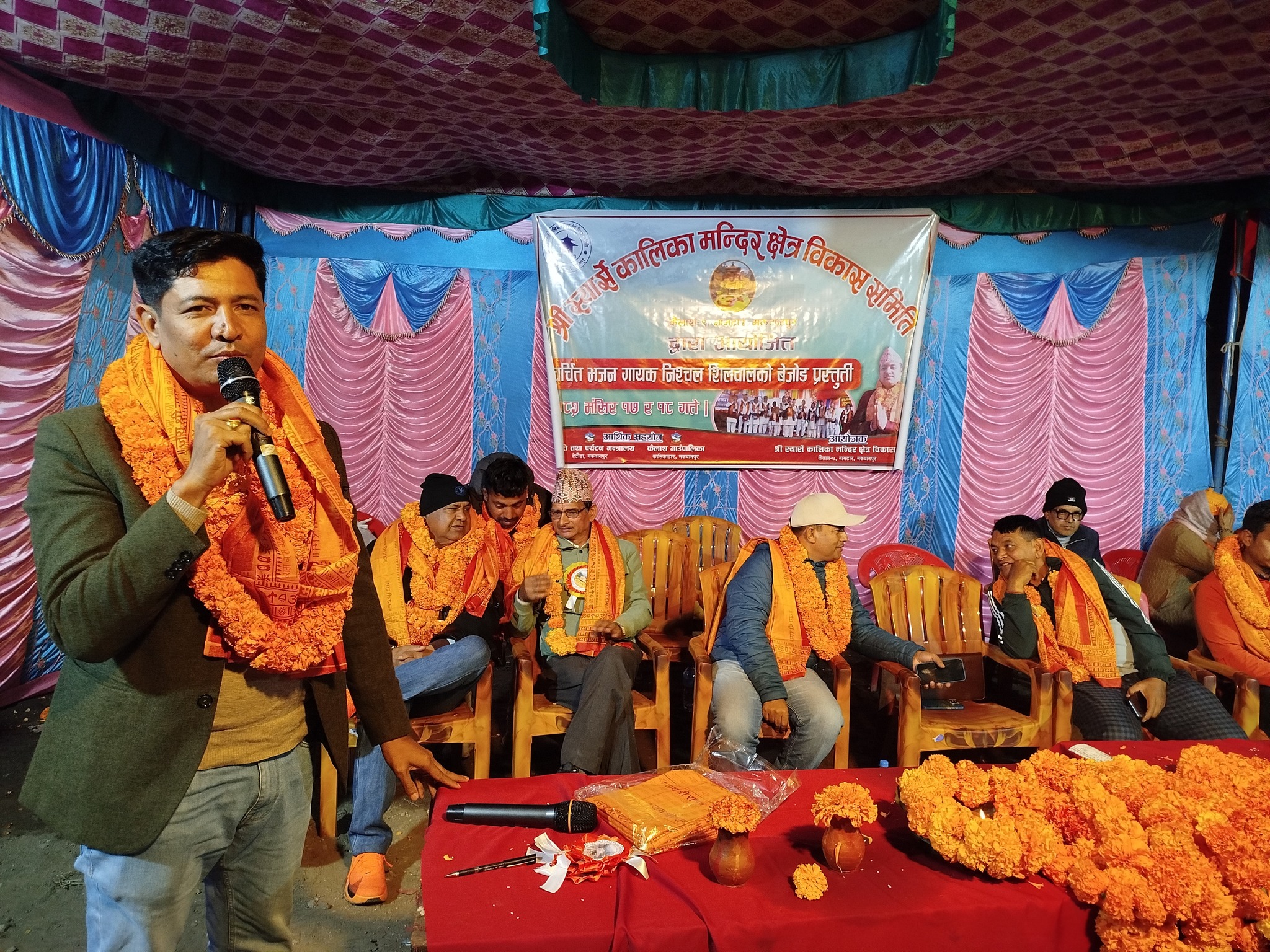 कार्यक्रममा गाउँपालिका उपाध्यक्ष बालकुमार मल्लले एउटा शक्तिपीठको रुपमा रहेको यस मन्दिर क्षेत्रको संरक्षण र प्रवद्र्धनमा हामी सबैको साथ रहने बताए । यस क्षेत्रको निर्माणमा आगामी दिनहरुमा स्थानीय सरकार, विभिन्न दाताहरुको साथ सहयोगमा थप व्यवस्थित गरि निर्माण गरिने उनले बताए । धर्मप्रति सबैको आस्था रहन्छ, सोही अनुरुप सबैले आफ्नो आफ्नो कर्म अनुरुप धर्म गरिरहेका हुन्छन्, सत्कर्म गर्नुस सबैले पुरा हुनेछ भन्ने विश्वास रहेको बताए ।