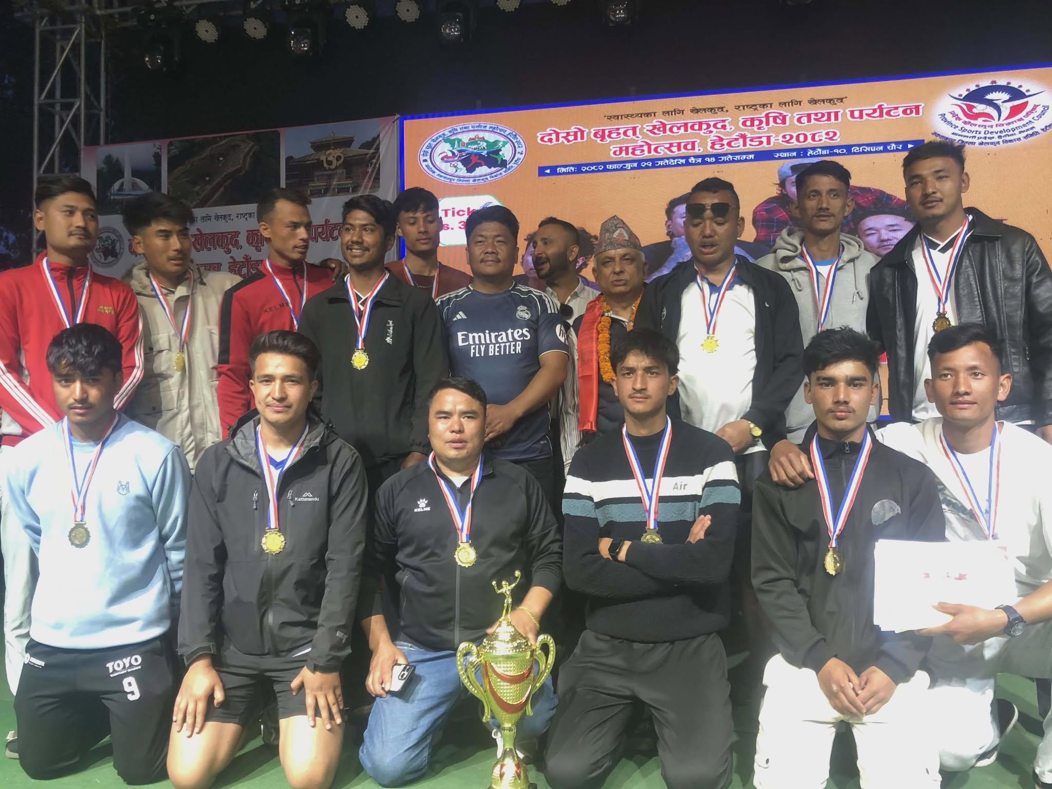 हेटौंडा \ मकवानपुर जिल्ला खेलकुद विकास समितिको आयोजनामा जारी दोस्रो वृहत्,खेलकुद कृषि तथा पर्यटन महोत्सवमा भएको मकवानपुर जिल्लास्तरीय भलिबल प्रतियोगिताको उपाधि थाहा नगरपालिका वडा नम्बर–२,स्थित मंगलेश्वर युवा क्लबले जितेको छ । मंगलबार महोत्सवको स्थलमा सम्पन्न भएको फाइनल खेलमा हेटौंडा–११,स्थित छहारी युवा समाजलाई ३–० को सोझो सेटले हराउँदै मंगलेश्वर युवा क्लबले उपाधि जितेको हो ।
